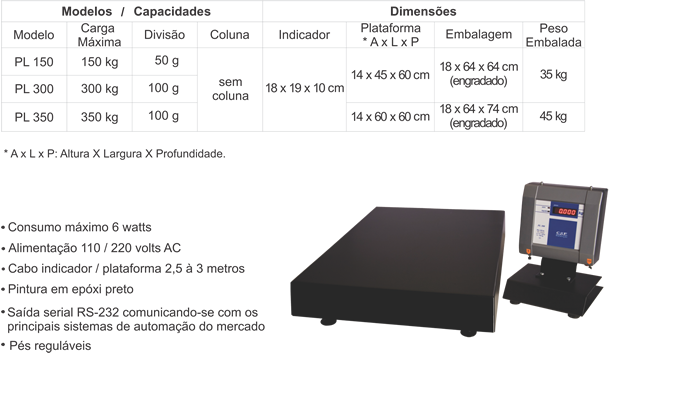 *Veja a tabela de modelos e suas respectivas características e detalhes na Galeria de Fotos do Produto.